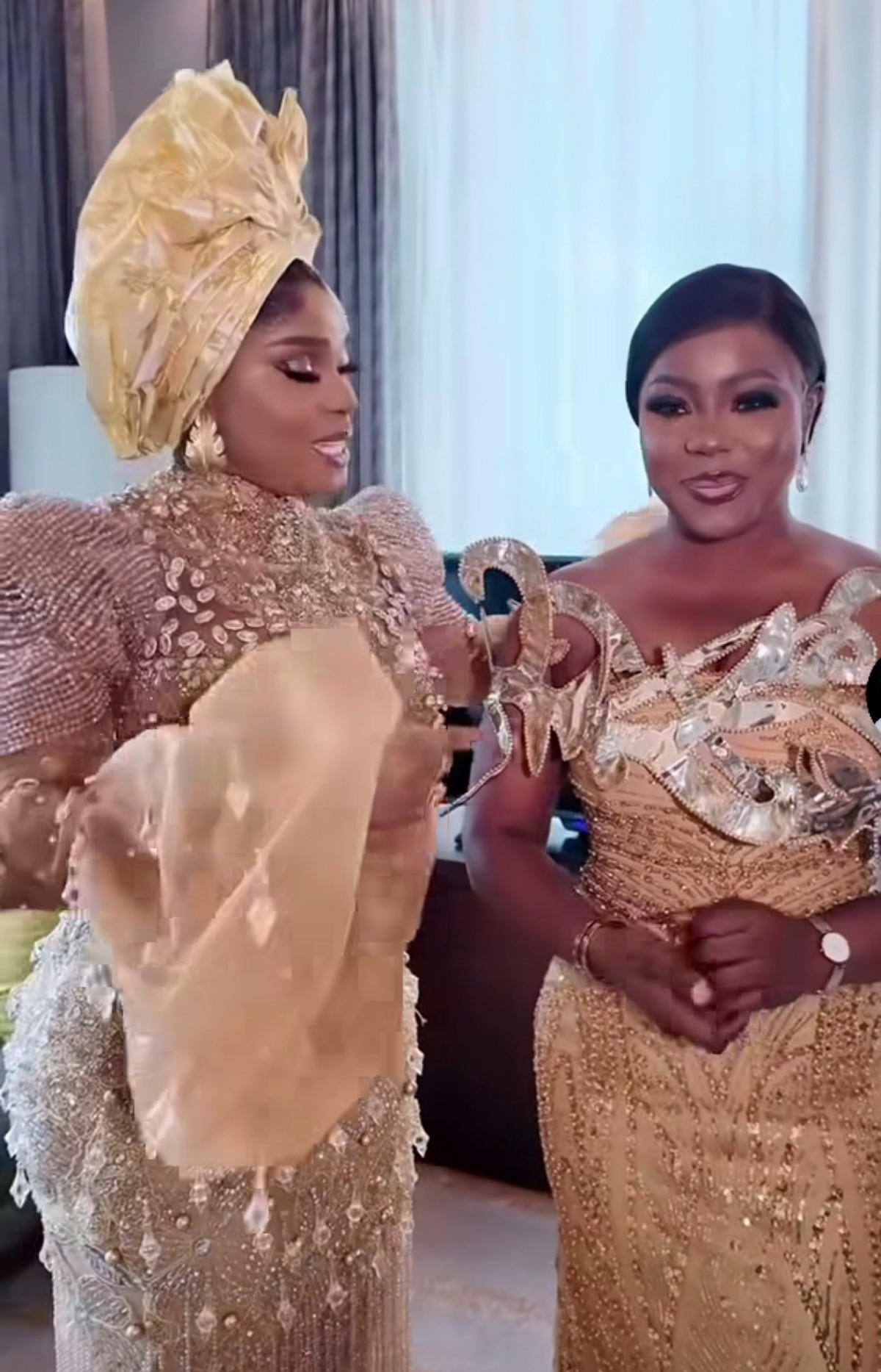 Nollywood actress and filmmaker Funke Akindele has dazzled in a gold dress at her colleague, Iyabo Ojo’s daughter’s grand wedding finale. She took to...