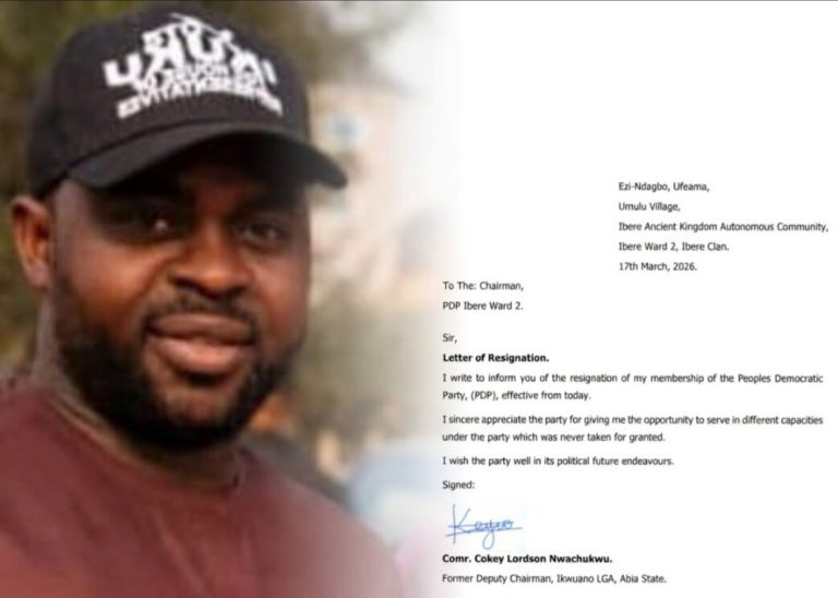 The resignation adds to the growing list of political realignments ahead of future electoral activities in Abia State, as stakeholders continue to reposition within the evolving political landscape. Political observers say such developments may influence party structures at the ward and local government levels in the coming months.