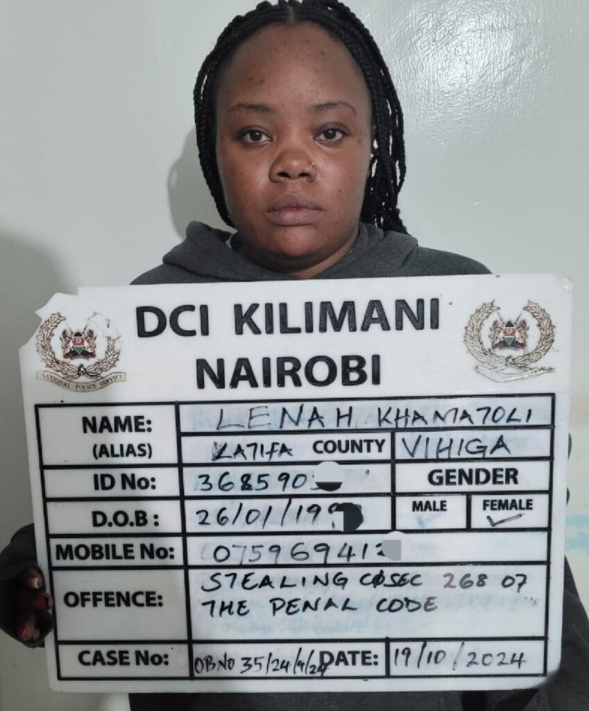 Detectives from the Directorate of Criminal Investigations (DCI) apprehended Lenah and two other suspects after tracking them down to their hiding and recovering newly acquired things suspected to be proceeds of the crime.