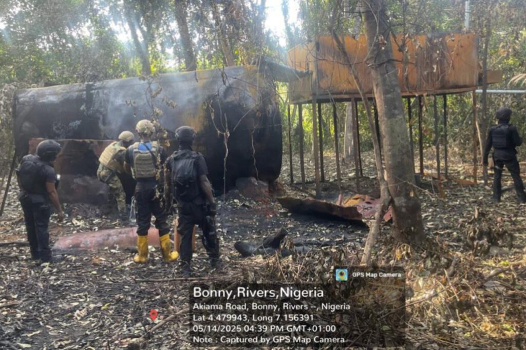 “The team later returned in the early hours of the following day and discovered that the stolen crude oil and refined products had been moved to a nearby bakery and makeshift structures used as storage facilities,” he said. “The illegal refinery was subsequently deactivated in line with directives from Defence Headquarters.”