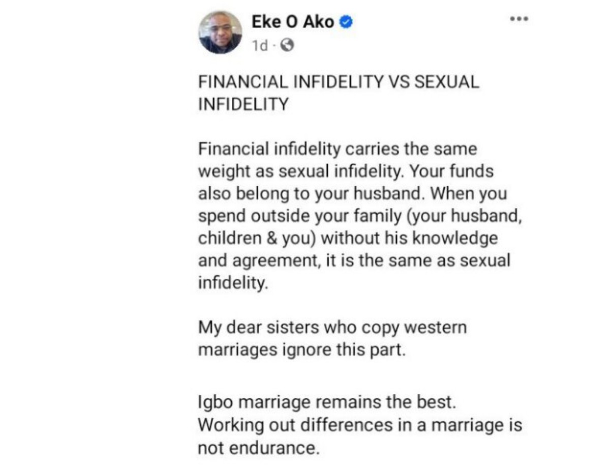 Cleric and relationship counselor Kingsley Okonkwo has sparked online discussions after he shared a daring message on marriage and money with unmarried men above...