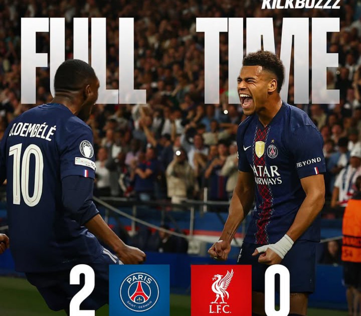 Desire Doue and Khvicha Kvaratskhelia scored the goals to give a dominant Paris Saint-Germain a 2-0 win over Liverpool in their Champions League quarter-final first leg on Wednesday, as the holders seized a clear advantage to take to Anfield for next week’s return.