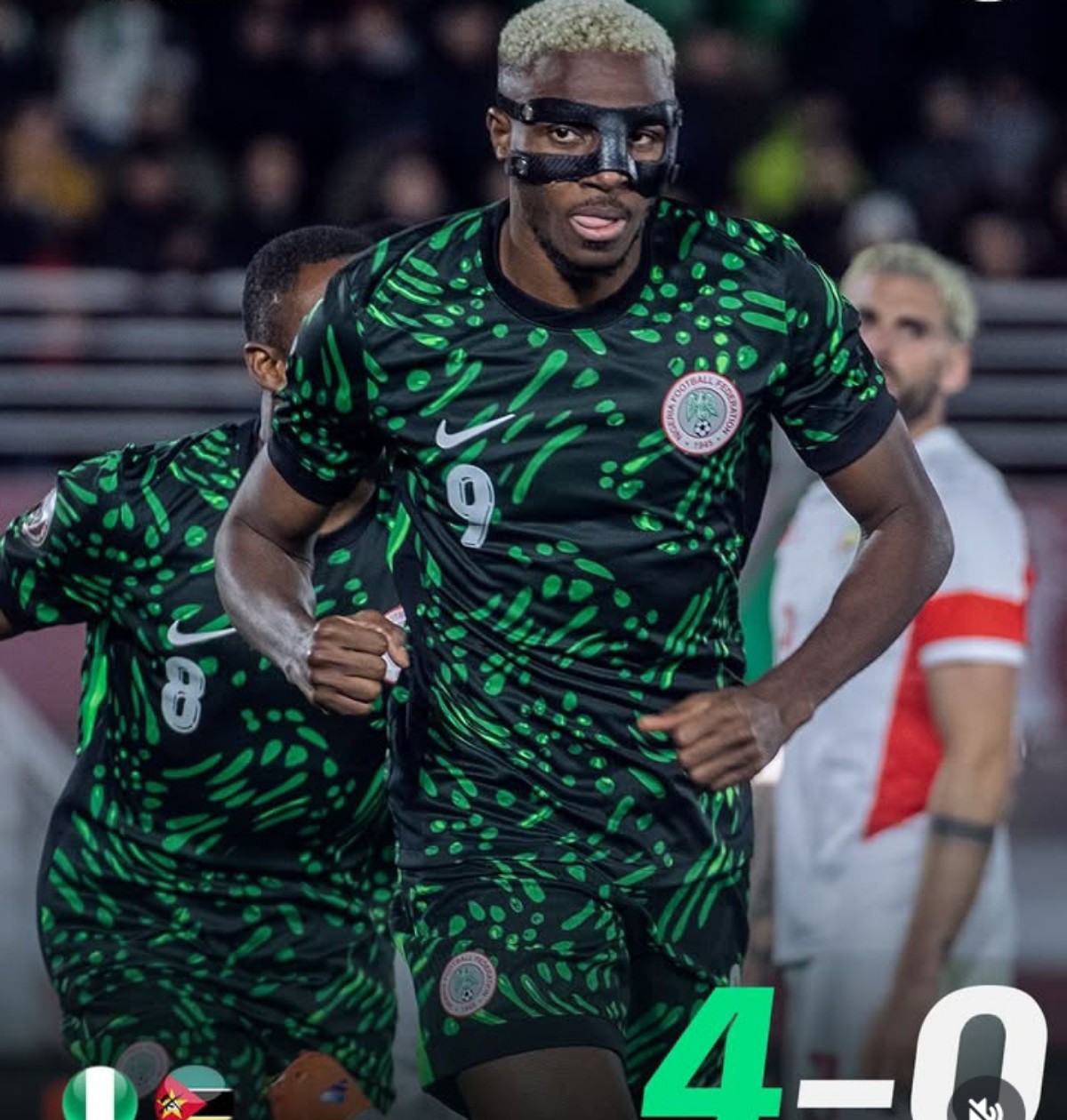 Osimhen had started the game without wearing his trademark mask, but restored the face covering before netting Nigeria’s second goal in 25 minutes.