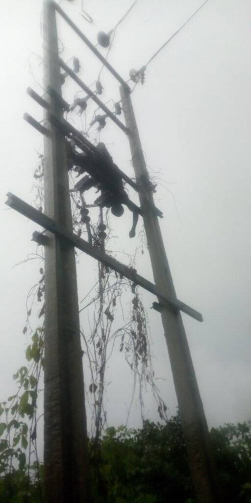 “As you can see, he is holding the cable in his hand up there which means that he was there to vandalize the cable. Our youths don’t want to work but want to make money. Nobody can identify the corpse because he is up there. Until they bring him down, we won’t know whether he is from here or from any of the neighbouring villages,” he noted.