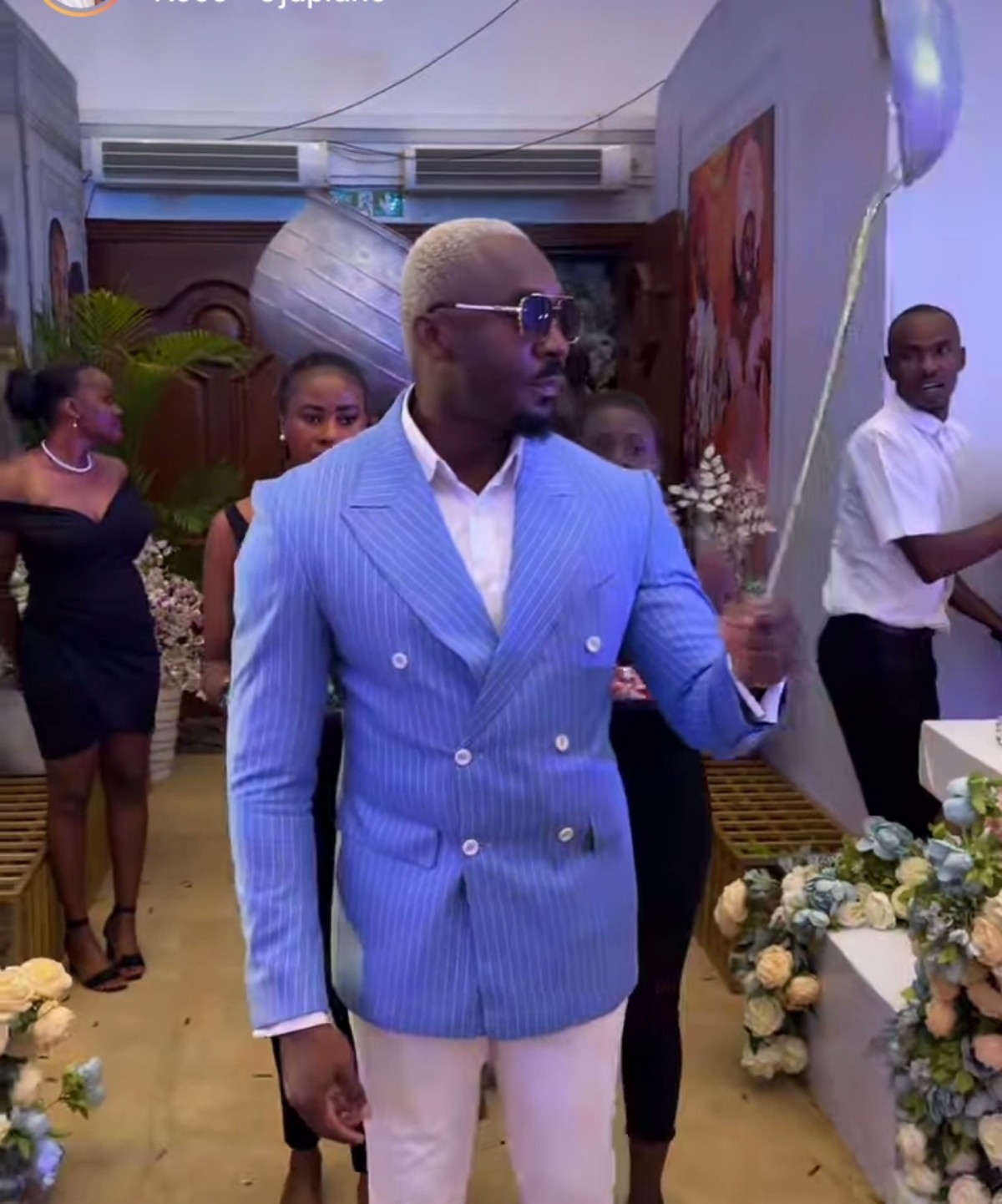 Pretty Mike of Lagos, a famous socialite, makes a dramatic entrance at the wedding of the comedienne, Warri Pikin, with his pot and soup ingredients....