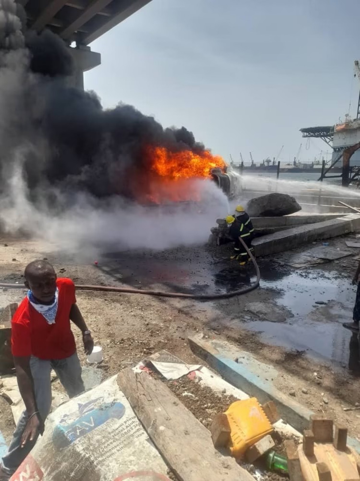 A combined team of emergency responders from the Lagos Fire Service, Federal Fire Service and Lagos State Emergency Management Agency was at the scene of the incident to put out the fire.