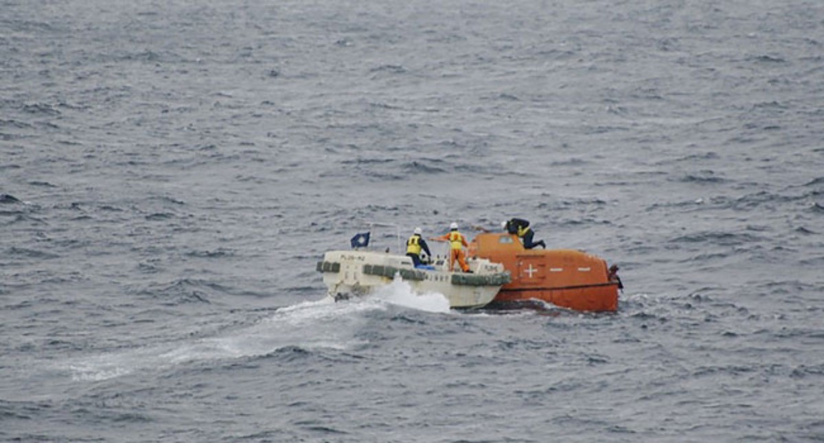 Three private ships were in the area and helped pick up five of the stranded crew members, Japan’s coast guard said.