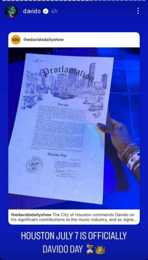 Following the sold-out show, every July 7 has been dedicated to Davido as ‘Davido’s Day’ In Houston.